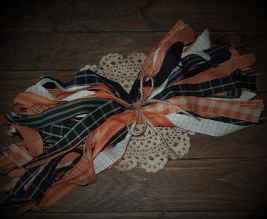 Farmhouse Halloween Homespun Fabric Strips Scraps~Orange & Black Rustic Home Decor~Plaid Stripe Check Fabric Strips for Garlands Wreaths
