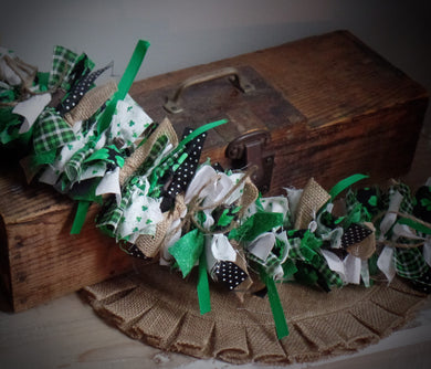 Farmhouse St. Patrick's Day Shamrock Fabric Lighted Rag Garland~Green~Burlap~Bows~String Lights~Mantle~Cabinet Tops~Entryway~Night Light~